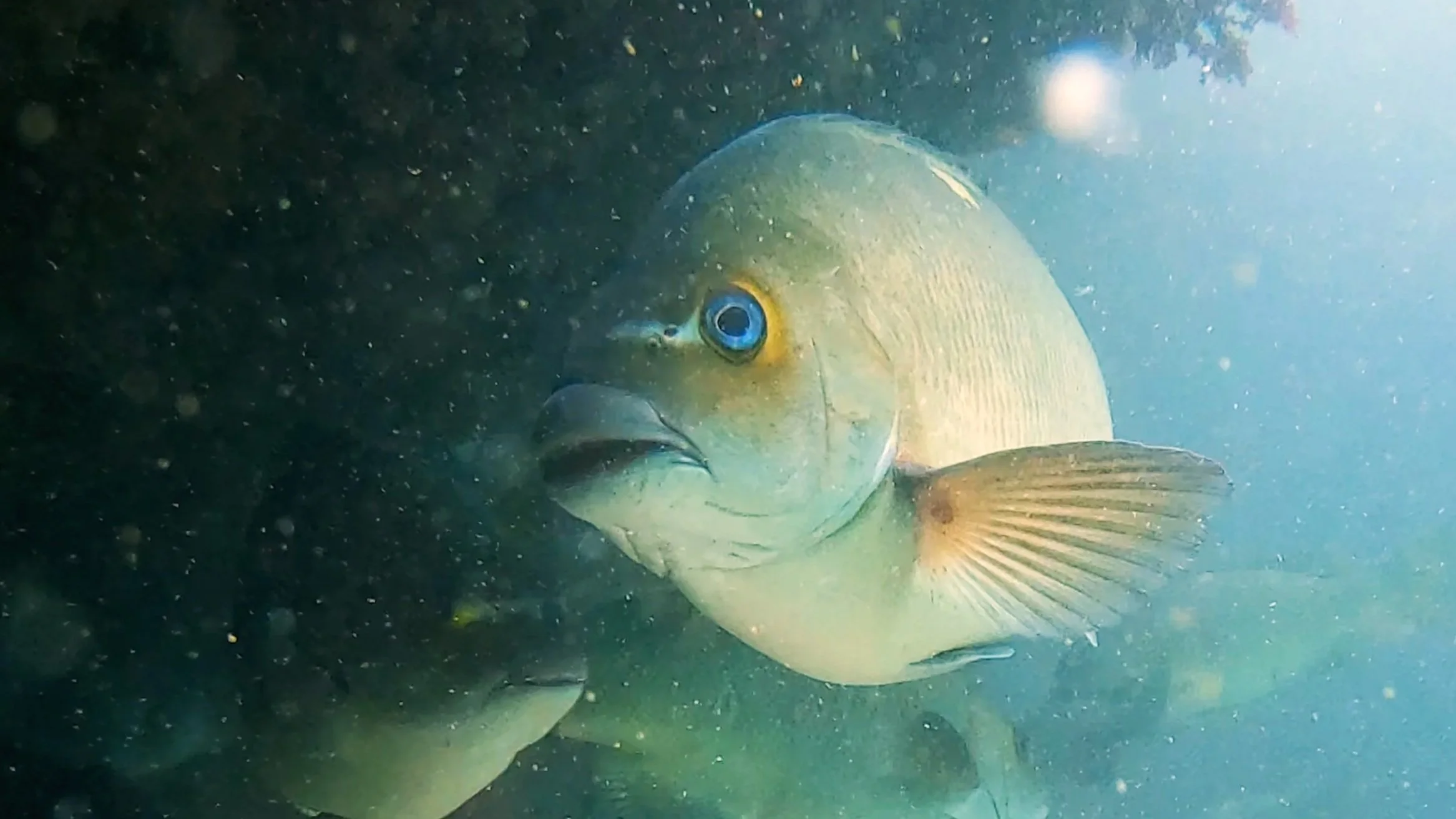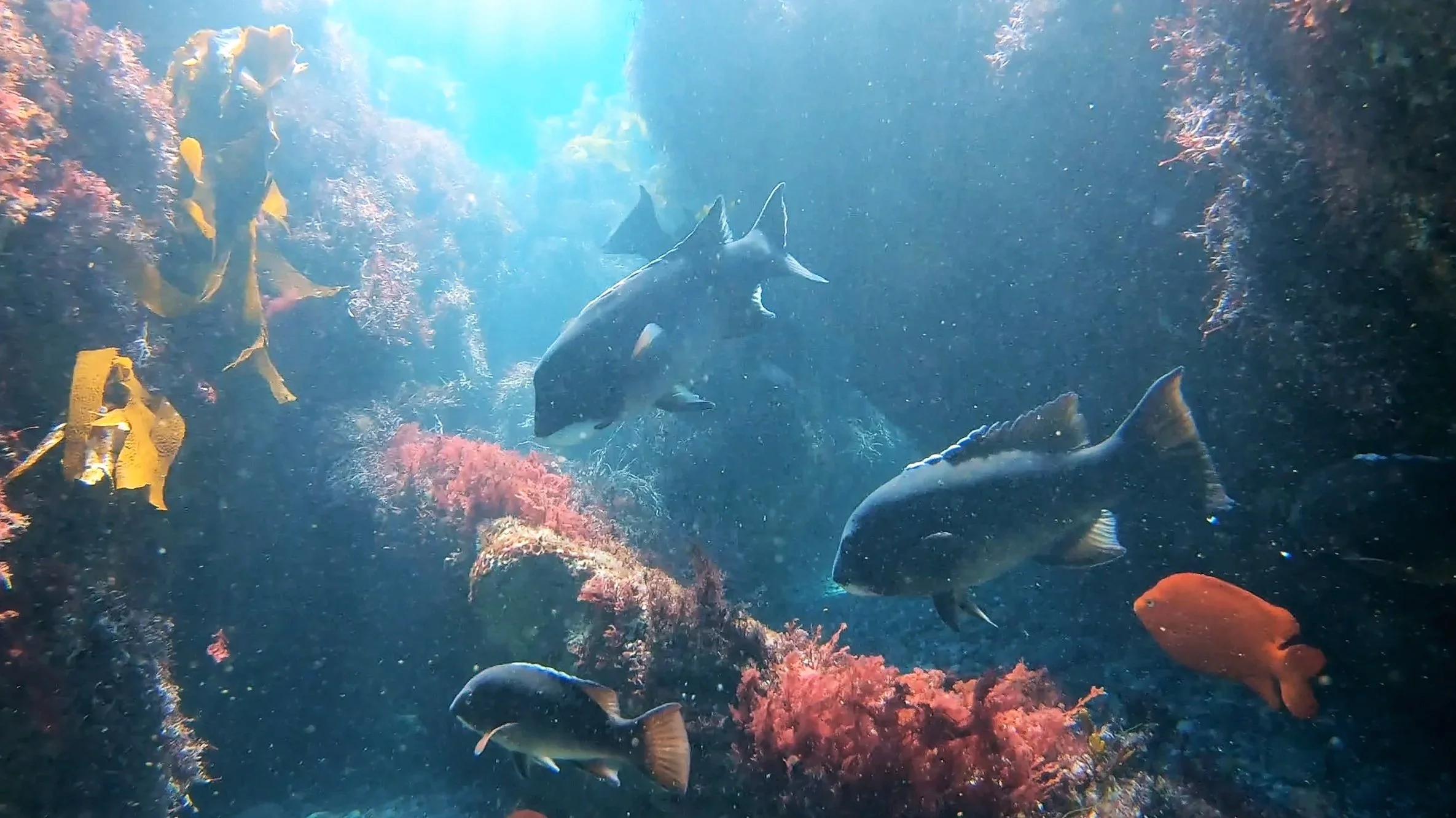 Their is a second shallow reef area separated by a rocky reef wall. Either find a crack to swim through or just plop over the top. it’s easy when it’s not low tide. This second shallow reef area is deeper and about double area. Ranging from 5 to 10’ deep. It starts off similar to the first shallow reef but has much more kelp and seaweed around the edges and especially in the middle. The middle looks like a kelp and seaweed jungle and the fish love to hangout there.