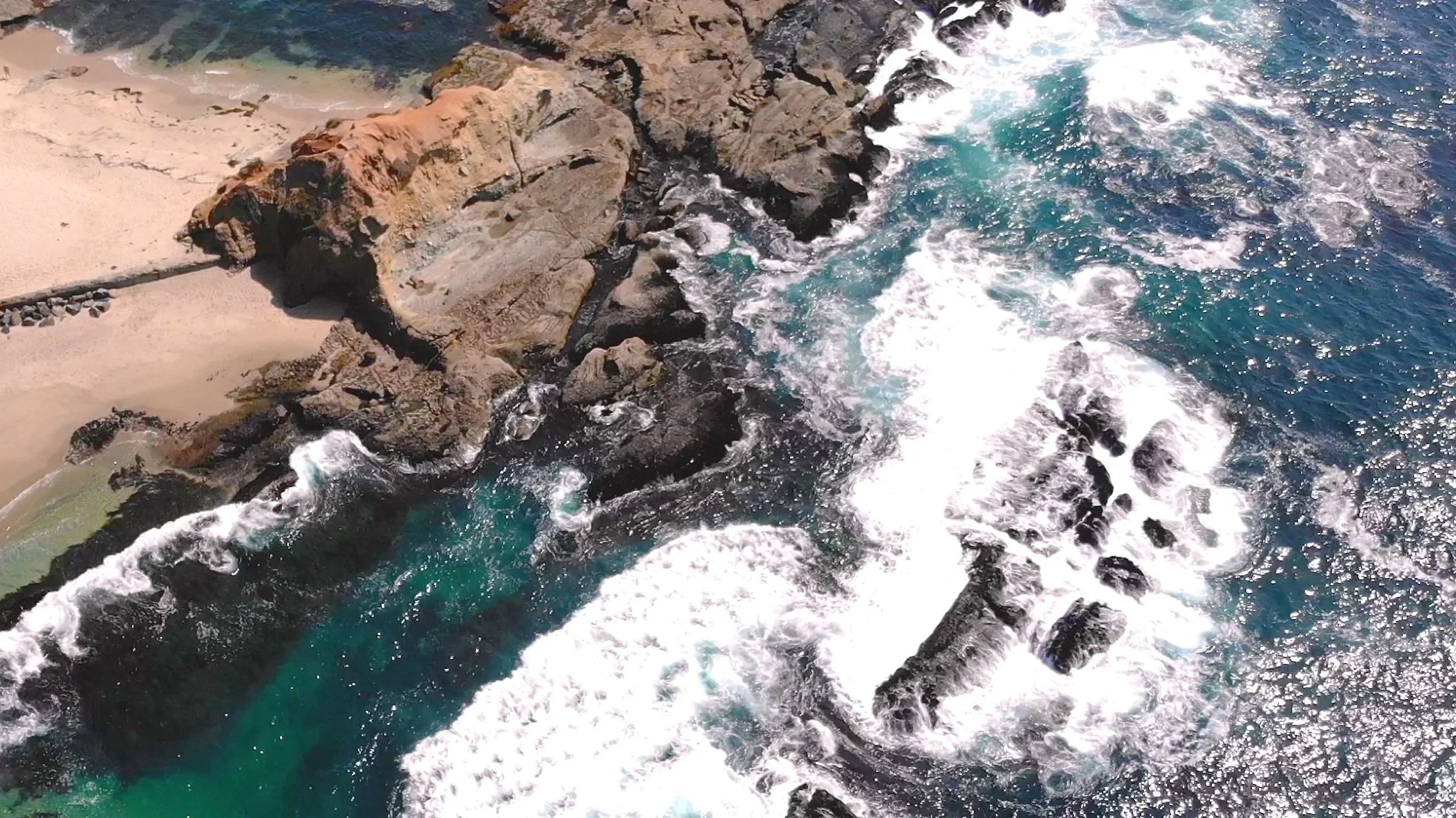 Goff Island is a huge rock structure that stretches from the beach, out into the ocean from various depths of just a few feet to 25’ plus. The on shore portion of Goff Island is a towering 20 to 25’ tall and very steep. Near shore, there are calm shallow reefs filled with fish and kelp that are naturally protected from the waves. Further out, there is an awesome outer reef, with deep crevices you can swim through. These deeper outer reefs are open to the ocean and all it’s current and waves. To safely dive these outer reefs, the conditions have to be calm or it’s a rough mess of waves, current and white wash.