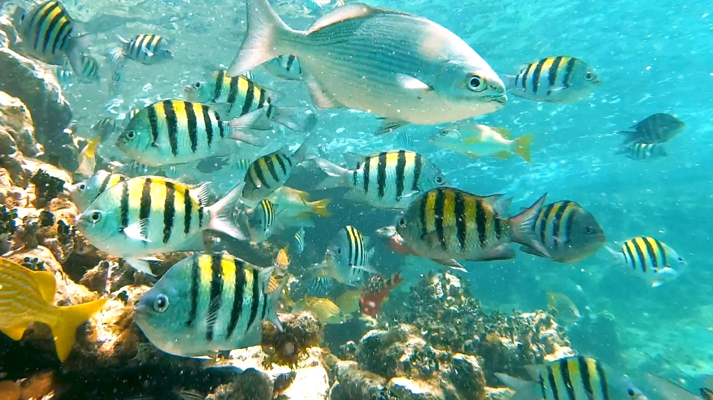 Goff Island is surrounded by diverse underwater environments. To the south, which is Treasure Island Beach, contains hundreds of thriving fish cruising the kelp and seaweed. To the north are shallow reefs shielded from the waves by the outer reefs.